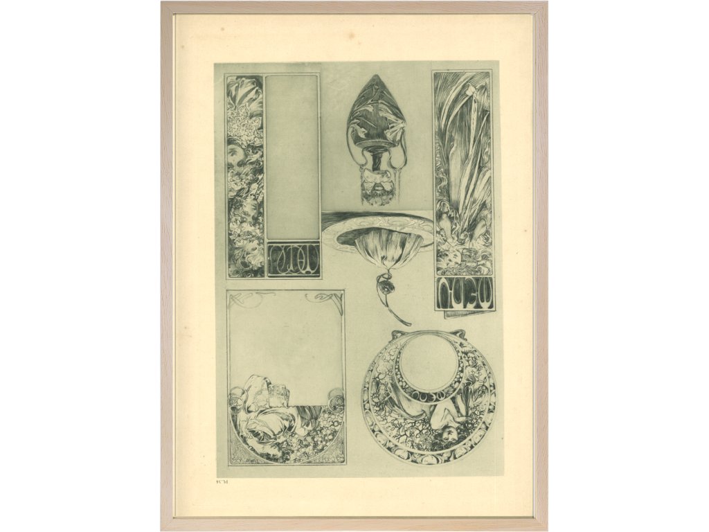 Documents Décoratifs - co to vlastně je? Jde o unikátní, zásadní, encyklopedickou práci v secesním stylu. Tato série z roku 1902, pokud je kompletní, se sestává ze 72 listů - litografií přibližně 45x33cm. Vydavatelem portfolia je Émile Lévy z Paříže. My máme aktuálně k dispozici přibližně 20 originálů těchto listů. Z nich některé Vám nyní nabízíme v tomto rámu ve velikosti velkorysých 70x50cm, jako nádherný bytový či kancelářský doplněk. Nejlépe si pořiďte hned dva, nebo tři. Vypadá to mimořádně.