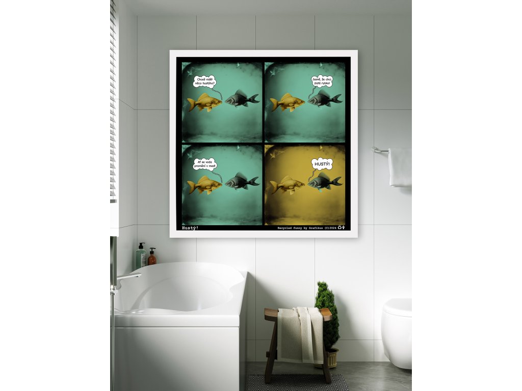 Jestli chcete mít tento prekérní tisk velikosti 60 x 60 centimetrů doma, stačí kliknout na tlačítko "do košíku". Navíc si jej můžete prohlížet zarámovaný v kvalitním dřevěném rámu s akrylovým sklem a v barvě rámu dle vašeho uvážlivého výběru. Informace o tisku najdete v článku Tisk plakátů Grafikus. Pokud byste toto krásné dílko chtěli větší, menší, zrcadlově obrácené, zarámované v jiném rámu... prostě cokoliv... stačí nám napsat.