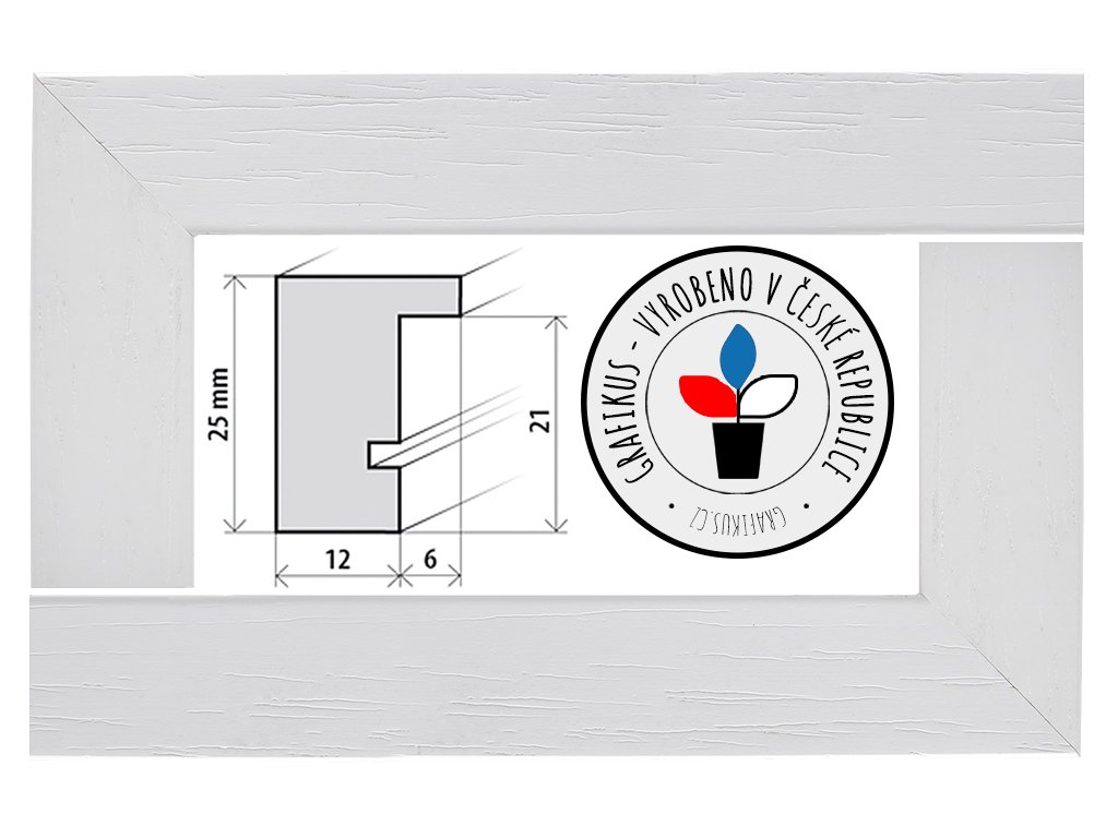 Kvalitní dřevěný rám v bílé barvě pro obrázek 60 x 80 centimetrů.