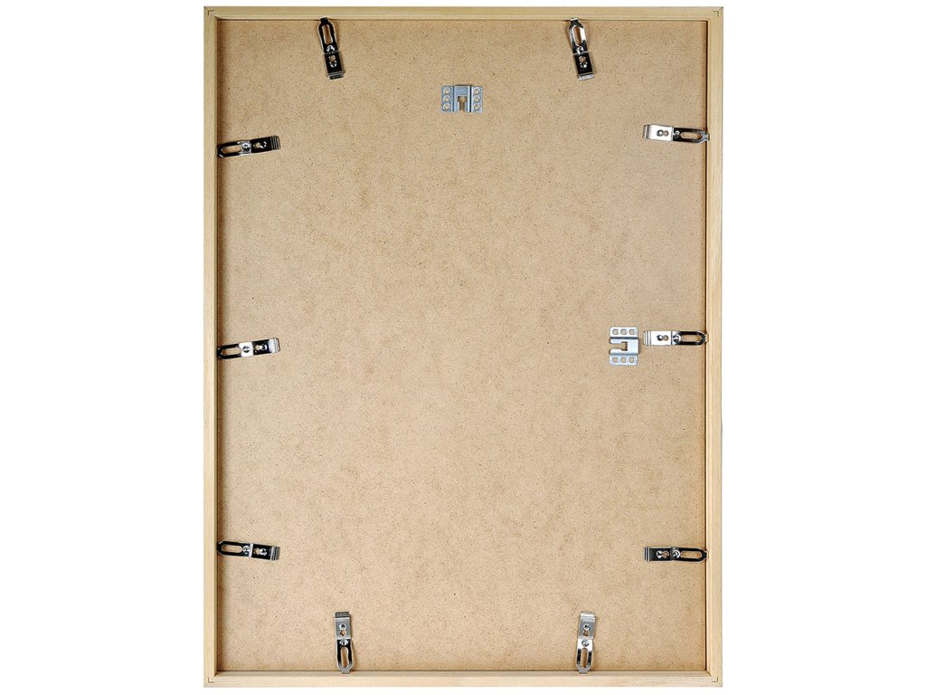 Rámeček Art má 18 mm úzkou lištu z kvalitního dřeva, která je 25 mm hluboká. Tento poměr vypadá velmi dobře na menších i větších rozměrech a rám působí mohutnějším dojmem, než ve skutečnosti je. Povrch rámů je upraven tak, že je vždy vidět struktura dřeva, ze kterého je rám vyroben. Zadní strana rámu je vyrobena z MDF a najdete na ní závěs pro umístění na zeď. Dále na ní najdete spony, pomocí kterých desky drží v rámu obrázek. Tímto jednoduchým způsobem můžete snadno vkládat libovolnou grafiku. Místo skla je použita kvalitní akrylová fólie, takže nehrozí rozbití skla při přepravě.