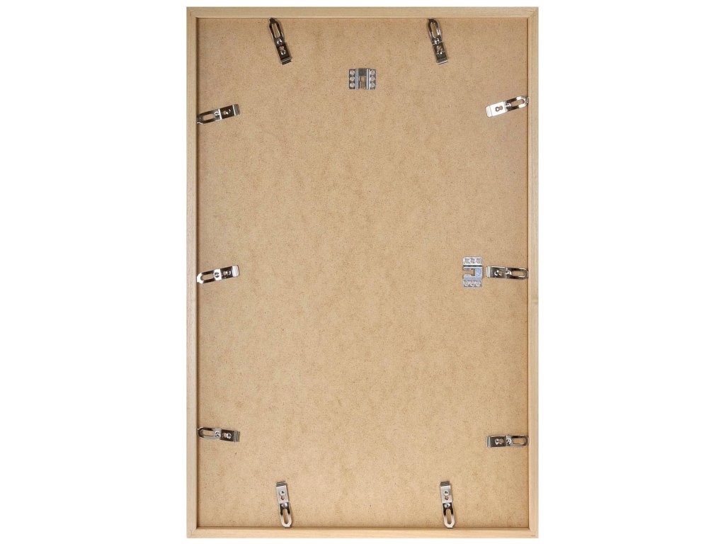 Rámeček Art má 18 mm úzkou lištu z kvalitního dřeva, která je 25 mm hluboká. Tento poměr vypadá velmi dobře na menších i větších rozměrech a rám působí mohutnějším dojmem, než ve skutečnosti je. Povrch rámů je upraven tak, že je vždy vidět struktura dřeva, ze kterého je rám vyroben. Zadní strana rámu je vyrobena z MDF a najdete na ní závěs pro umístění na zeď. Dále na ní najdete spony, pomocí kterých desky drží v rámu obrázek. Tímto jednoduchým způsobem můžete snadno vkládat libovolnou grafiku. Místo skla je použita kvalitní akrylová fólie, takže nehrozí rozbití skla při přepravě.
