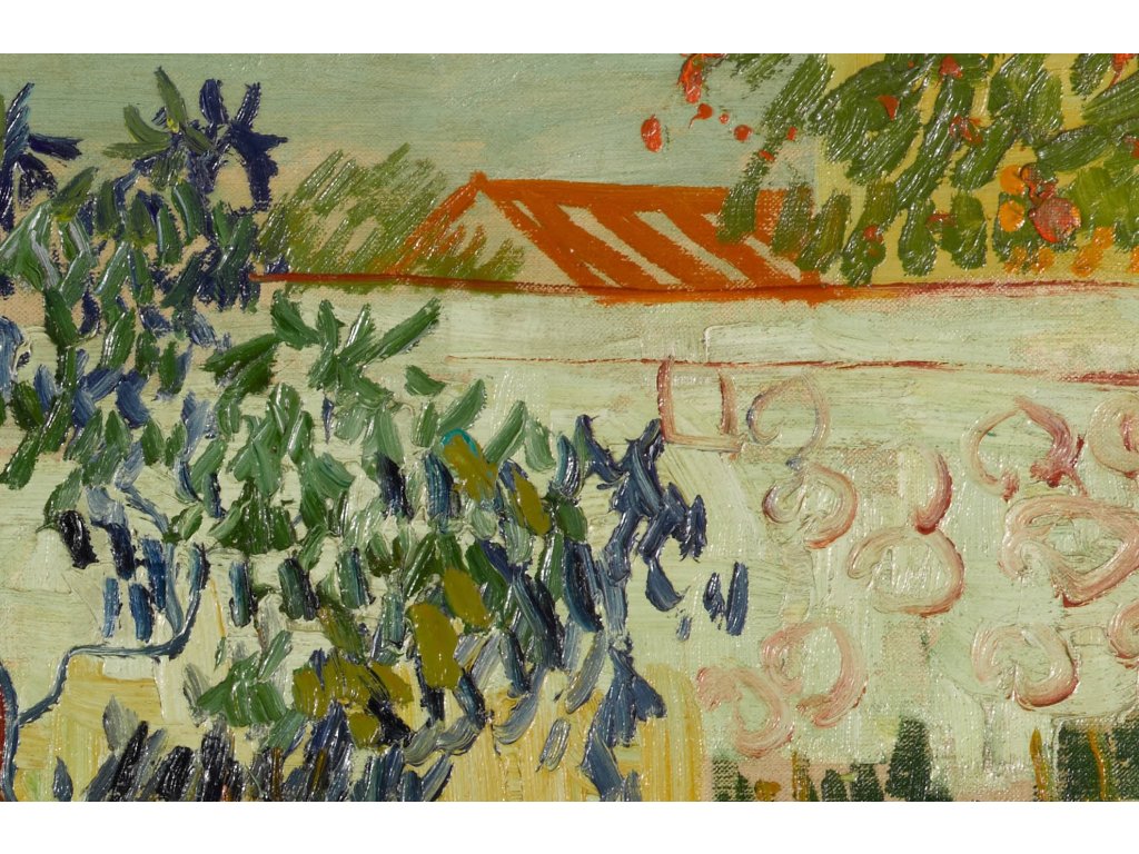 Reprodukce obrazu Zahrada v Arles  od Vincenta van Gogha z roku 1885. Rozměr cca 60 x 74 cm. Tisk na kvalitní polomatný fotopapír 234 g/m².